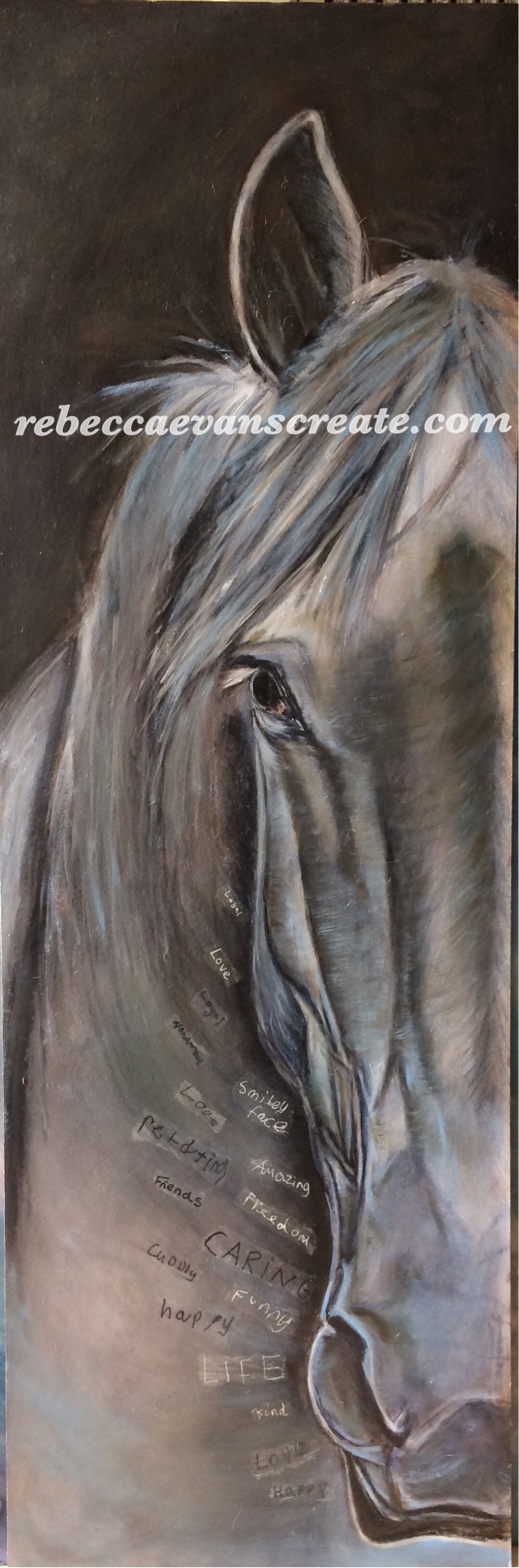 ‘Why’ oil painting with featured words,written by students at FCRT about what horses mean to them.