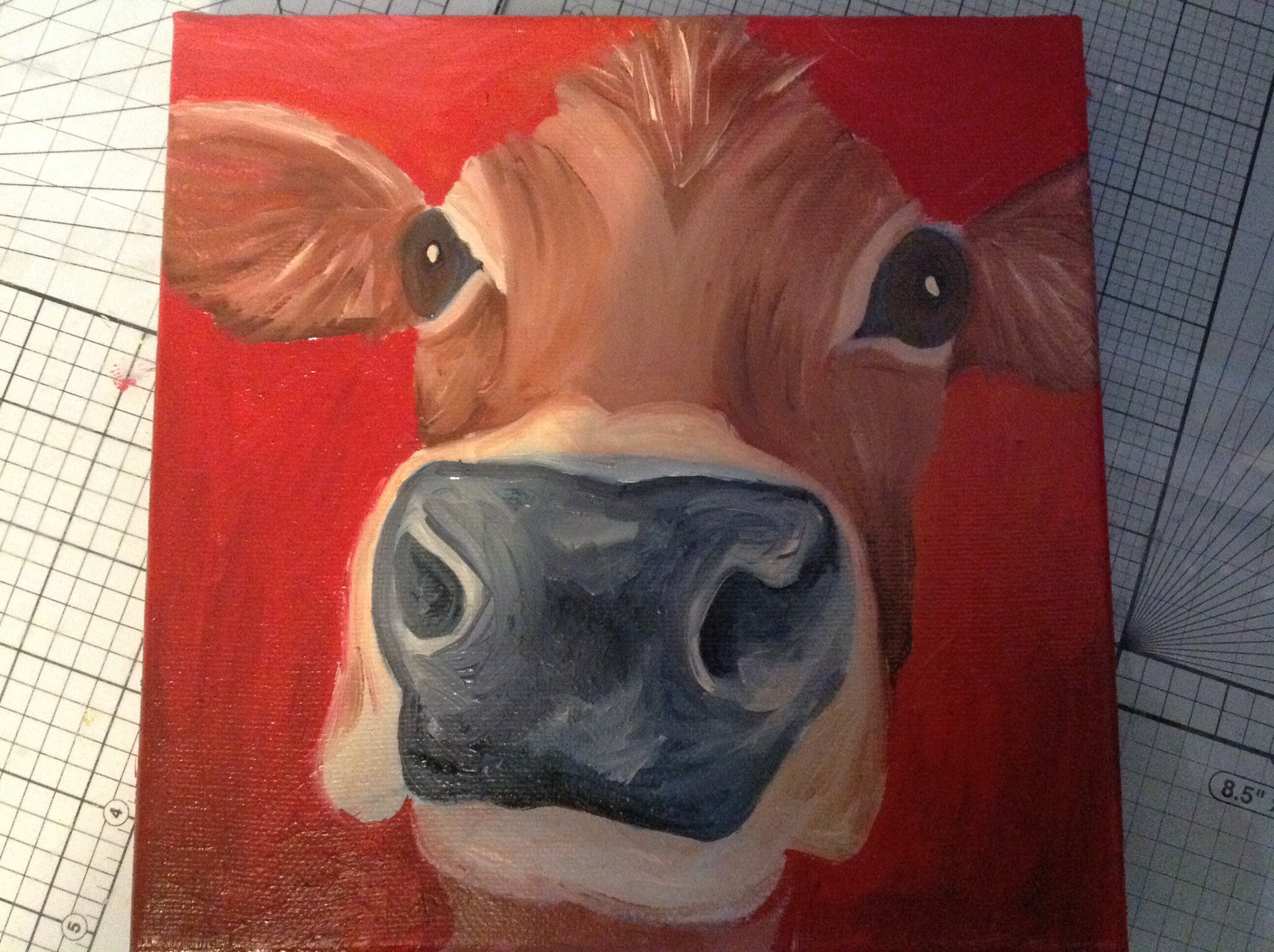 I do love these cow paintings, this is the second time I have done one, living in the new forest and being surrounded by free grazing cattle, really makes these special, and fun to paint. I have STEERED! ! ! Away LOL (sorry had to add that)from painting these cow heads as there have been so many done by local artists, but I must say I think they look great on the wall. I just need to add some high lights, dark tones, and this quick picture is done. The highland cattle will be turned out soon, when the better weather arrives, so I will have to take a photo and paint one of those, as they are just soooo cute.