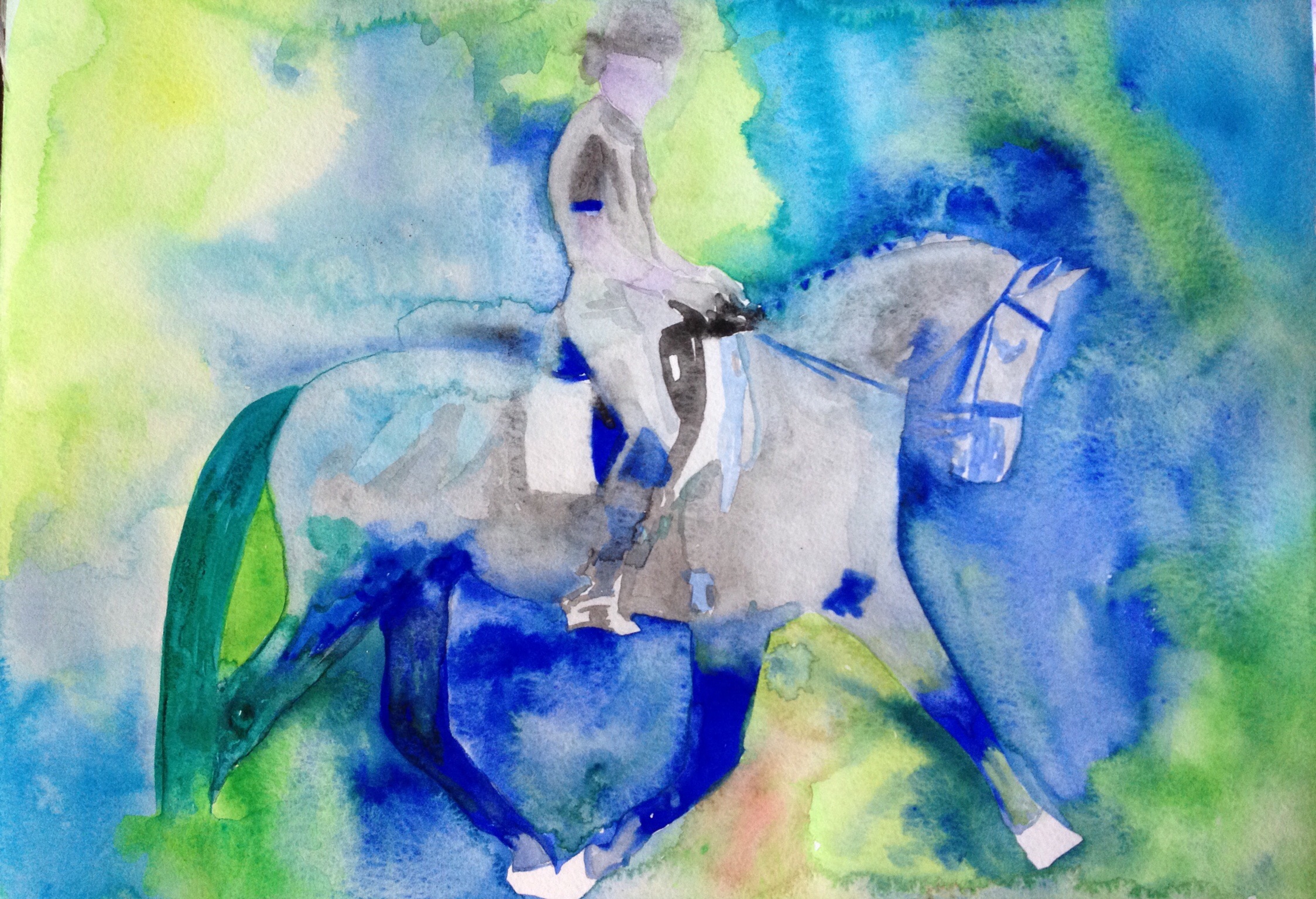thought it was a good idea to challenge myself, with a whole horse and rider, it did not go as planned, at the moment it is only watercolour, I keep it on the desk, and look at it daily while I try to decide what to use to correct it, and make it better, or to leave, and it be as it is, after all I have learnt I can sometimes go too far, especially as I am very heavy with my paint use ( most of the time) and have that problem of loosing whites!