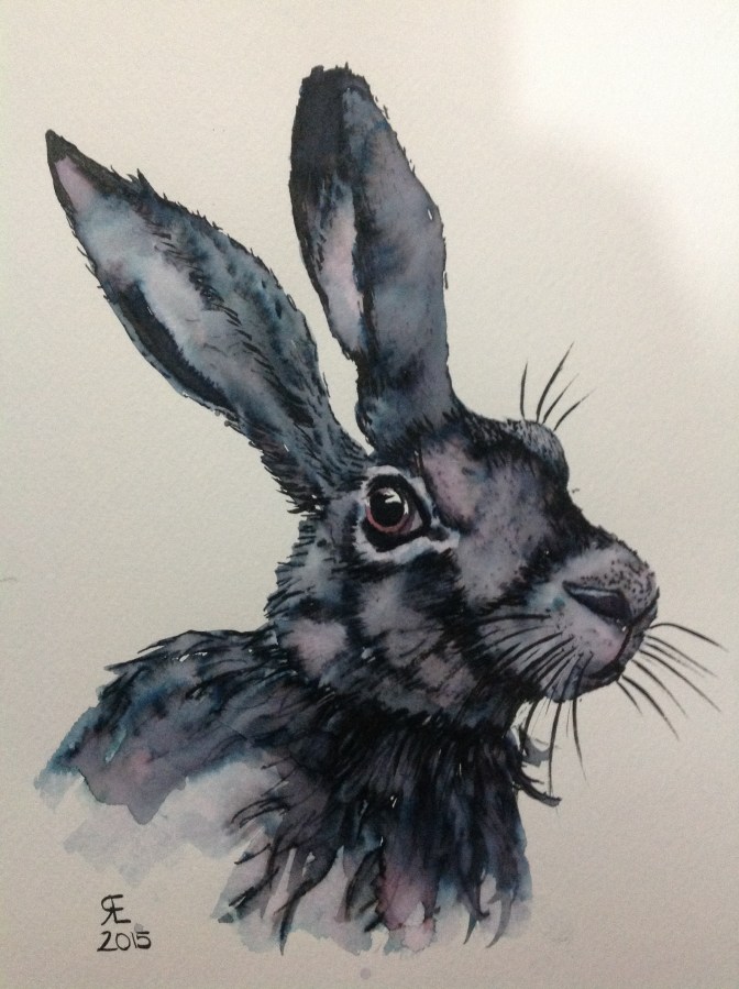 Cutsie Hare watercolour and elegant writer