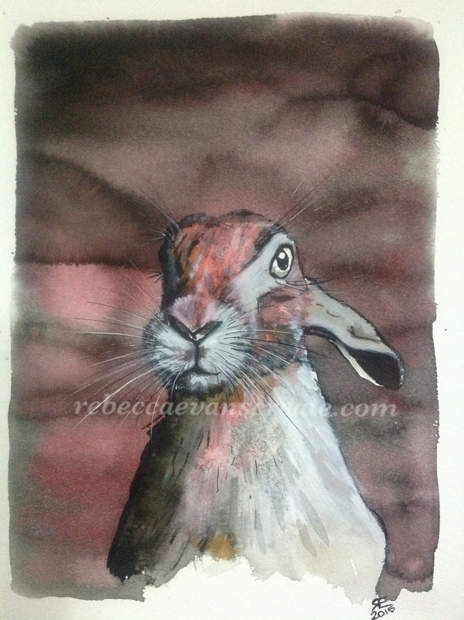 so begins the painting, there is something quite wonderful about staying in,looking at the miserable day, through the window and planning to create something from this blank white sheet. One thing I did know was that the inks are in, this time maybe not so much black! Let’s just say I had fun. I wanted it to be relaxing so I stuck with hares and horses ( one horse was trashed) .
