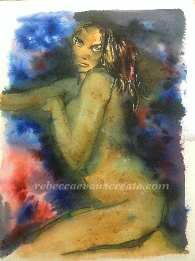 ‘Figure’ brusho first attempt, too much colour bleeding/ spread. Too dark