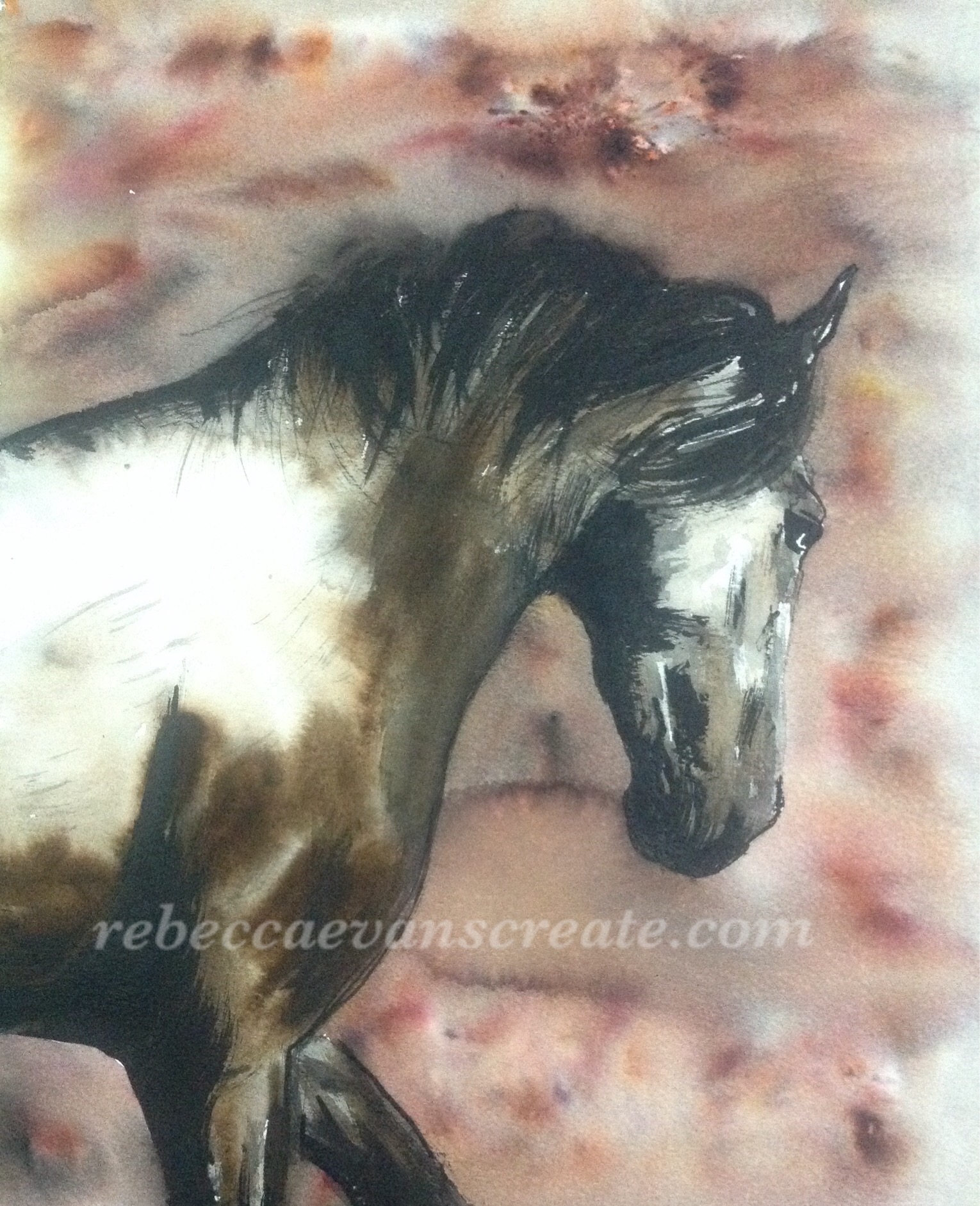 ‘Ca’ sienna’ brusho background, and Indian ink, a little watercolour
