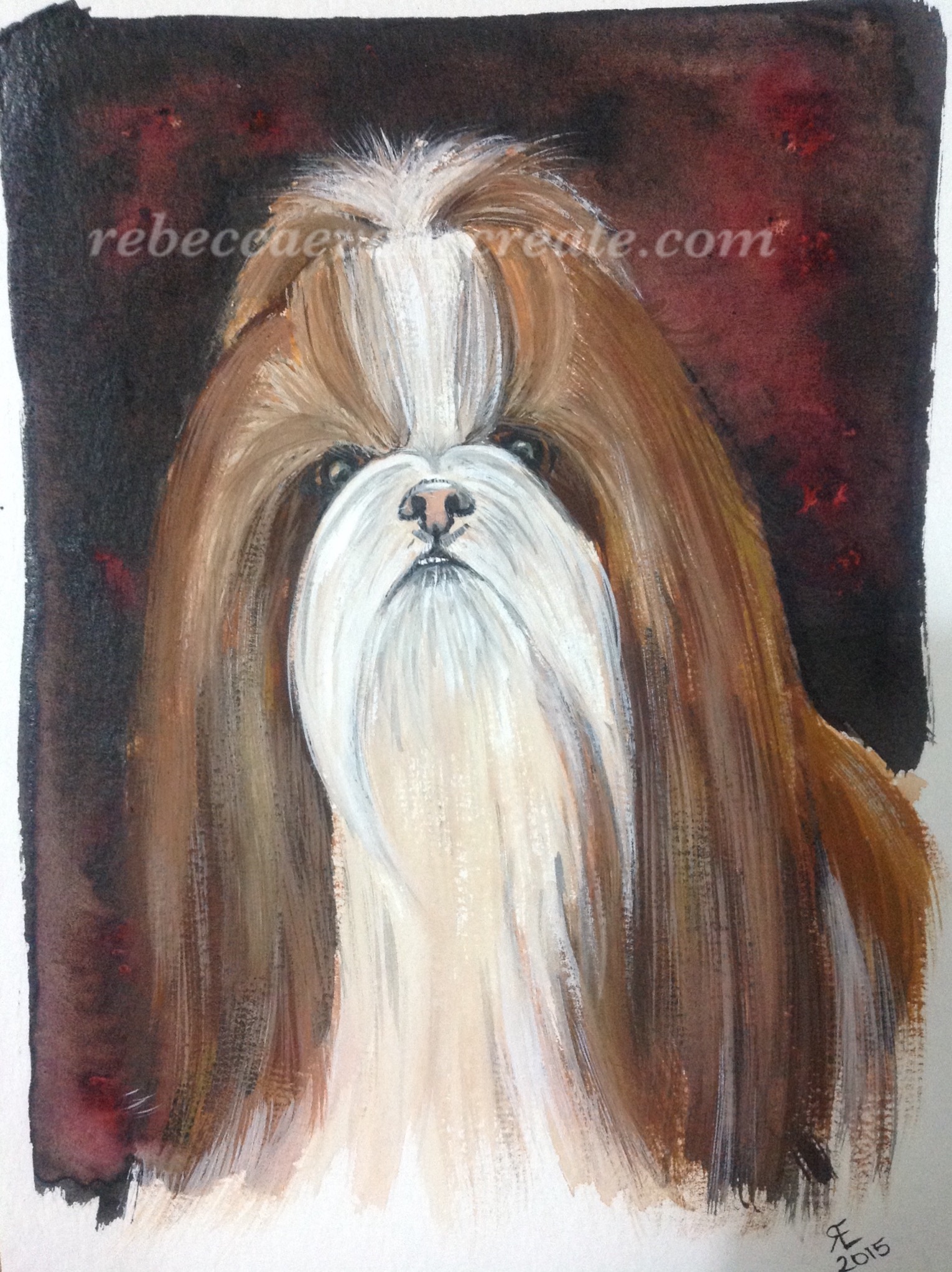 ‘Julia’ shih tzu dog, in watercolour, and Indian ink