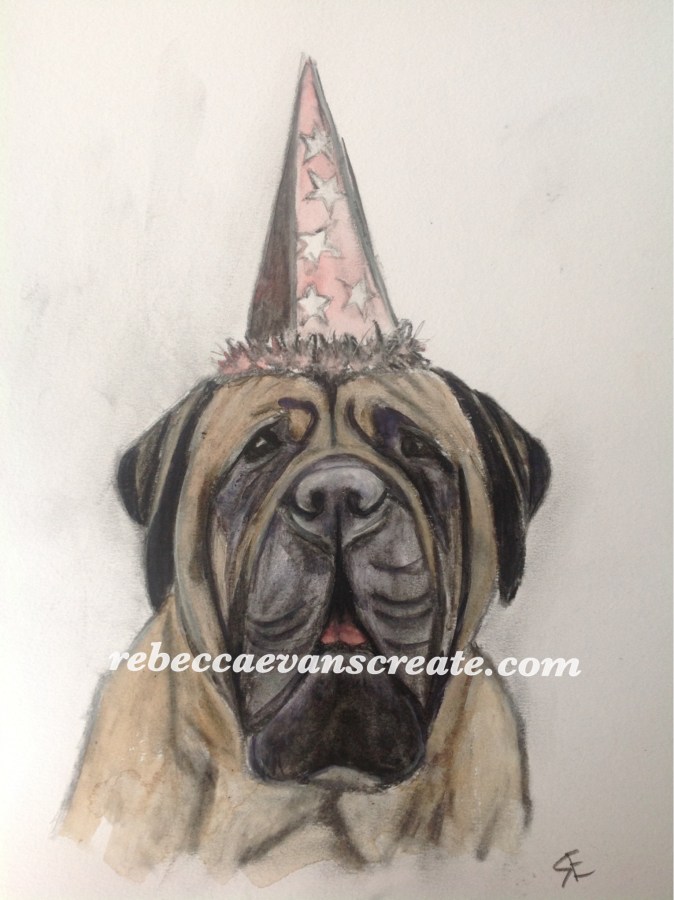 Charcoal and pastel ‘ party pup’