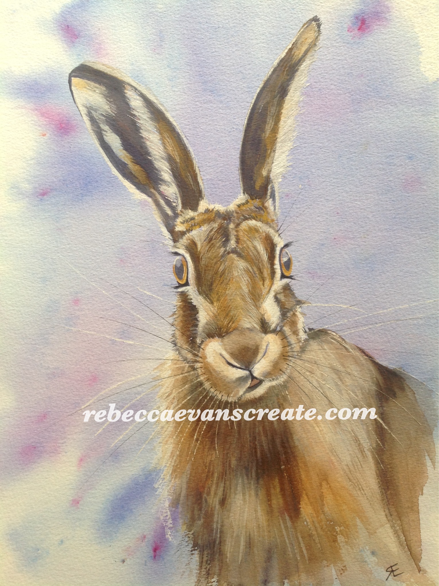 ‘Alice’ hare in watercolour 200 lb Saunders cold press 15″X11″