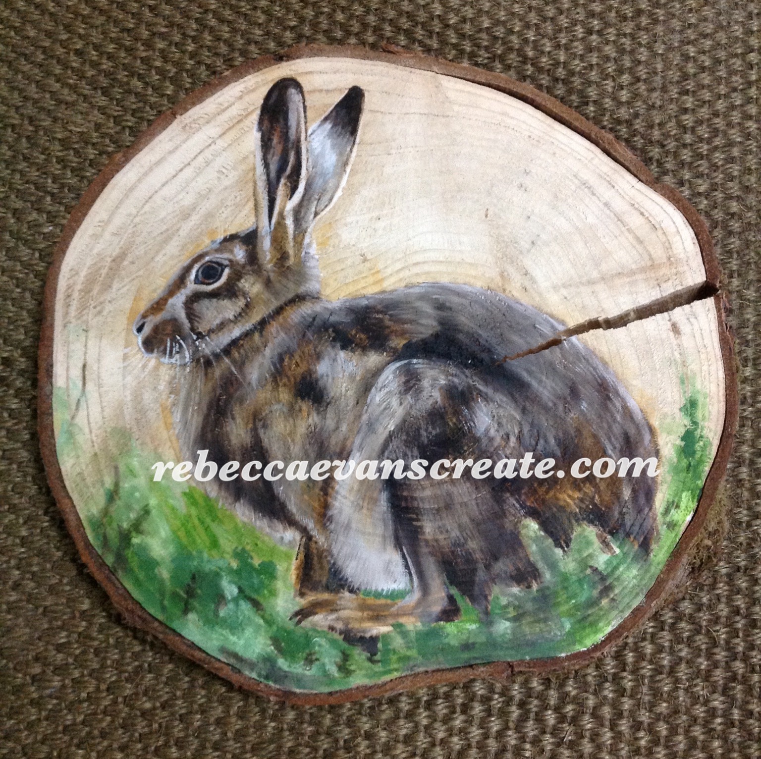 Oil painting on wood slice, unfortunately it was soft wood and cracked