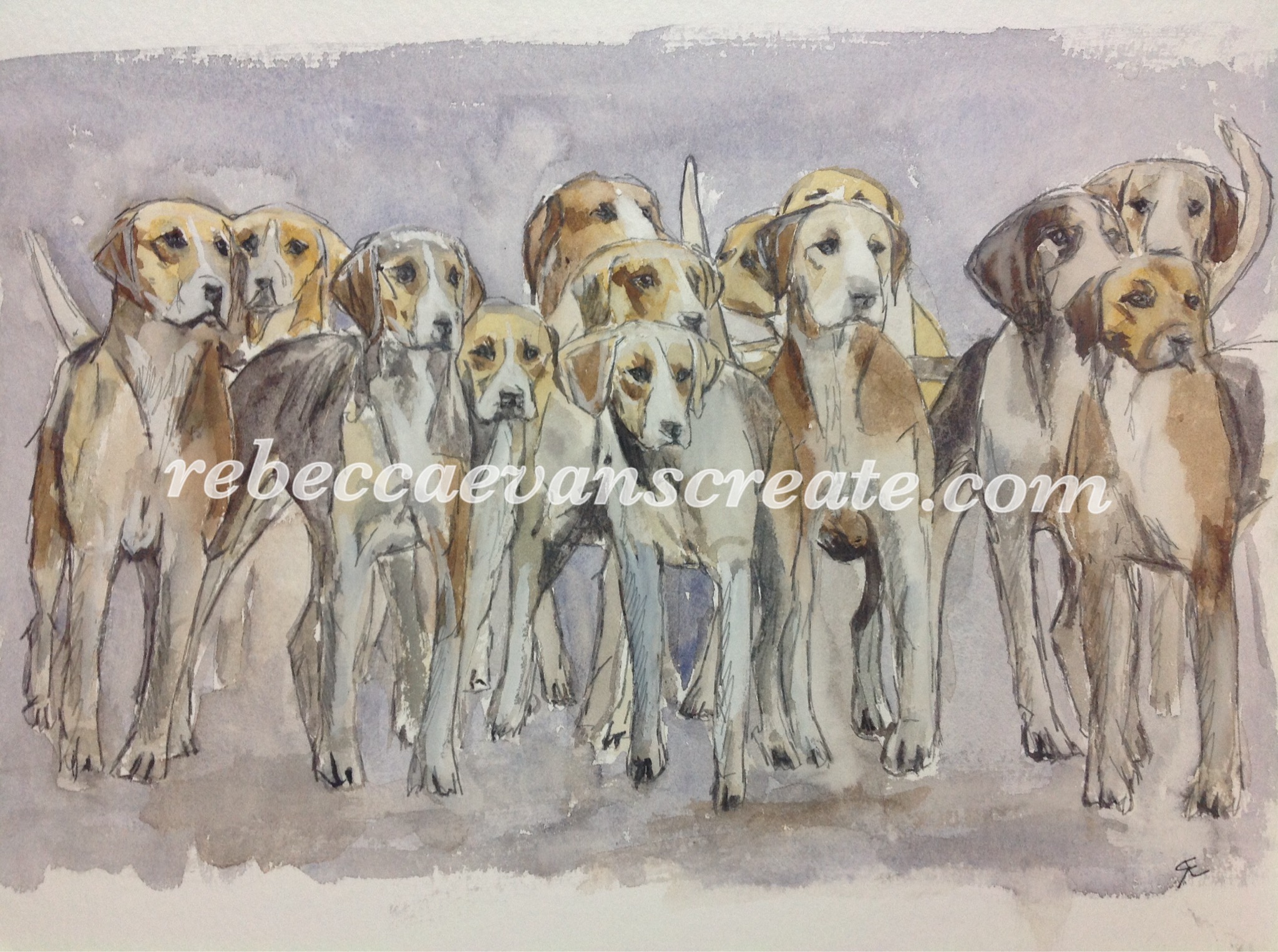 ‘Anticipation’ watercolour and ink hounds 30×40 coldpress 200lb
