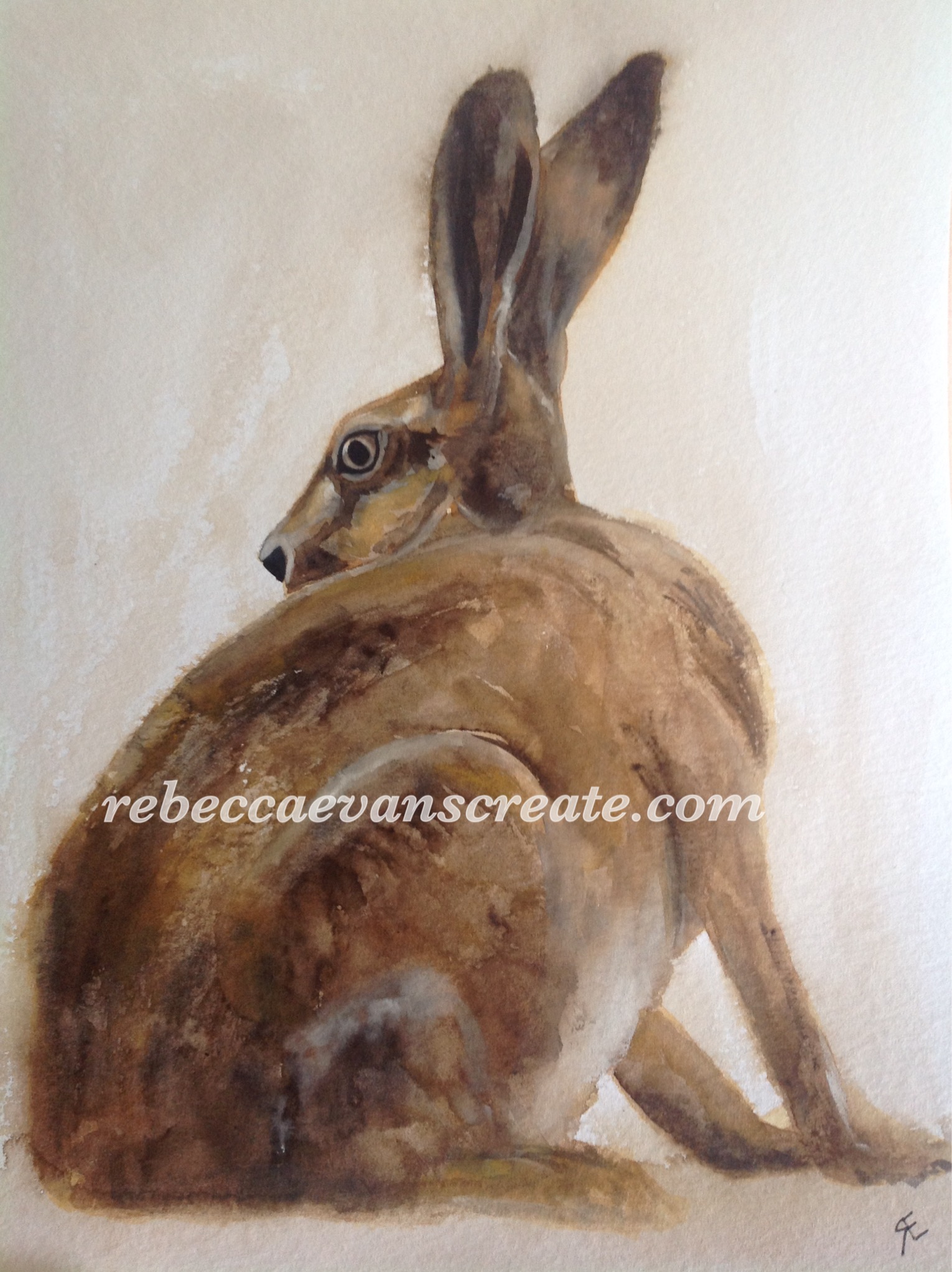 ‘Hare’ watercolour 30×40 coldpress 200lb