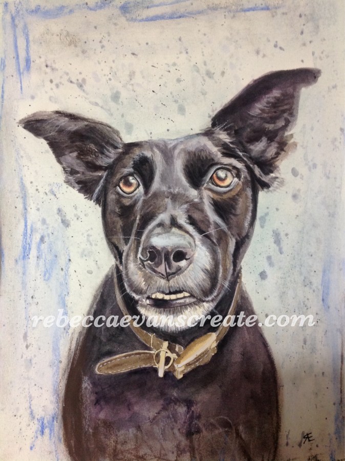 ‘That’s my girl’ Cassie kelpiexlab 28x38cm coldpress Saunders watercolour and a little pastel