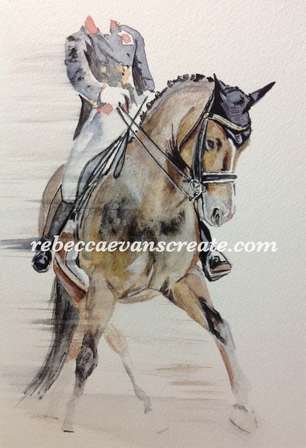 ‘Olympic gold’ dressage watercolour 9×12″ Langton 140lb