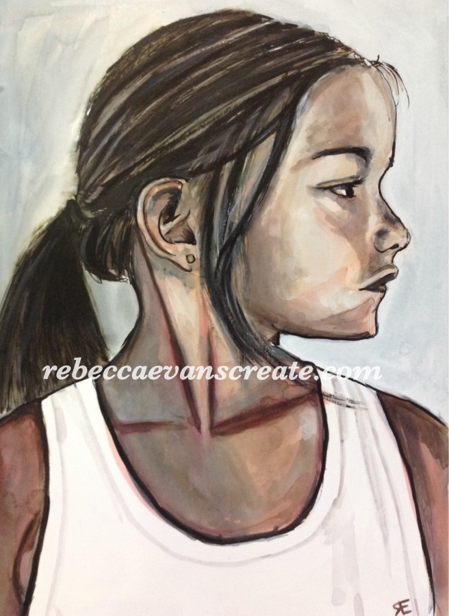 ‘Side on’ Sktchy app inspiration ink and watercolour on hotpress 140 lb 8.3×11.7″