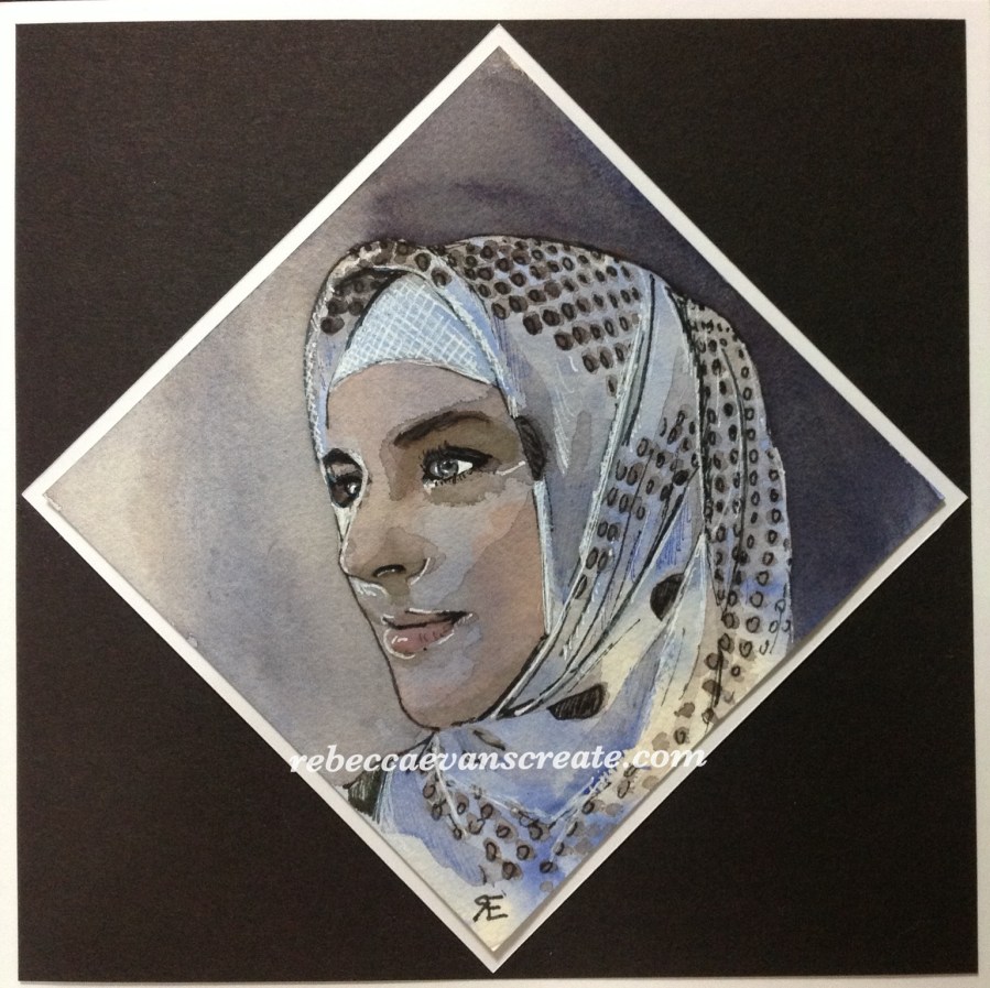 ‘Elegance is simple’ 5×5″ watercolour, ink and white gel pen 140 lb cold press Saunders Sktchy app inspiration