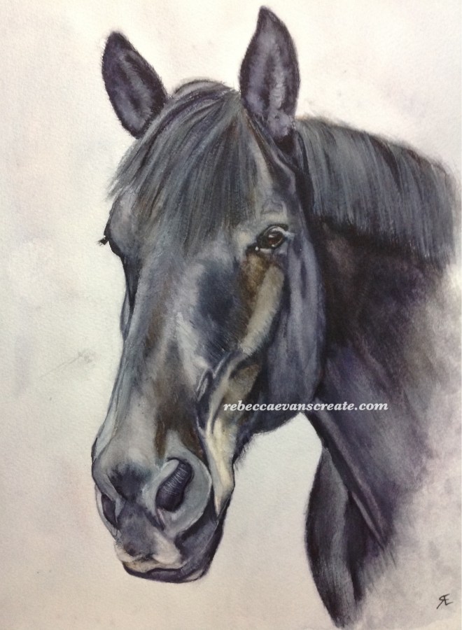 ‘Miss Trouble’ watercolour horse, 140lb coldpress 9×12″ Sktchy app inspiration