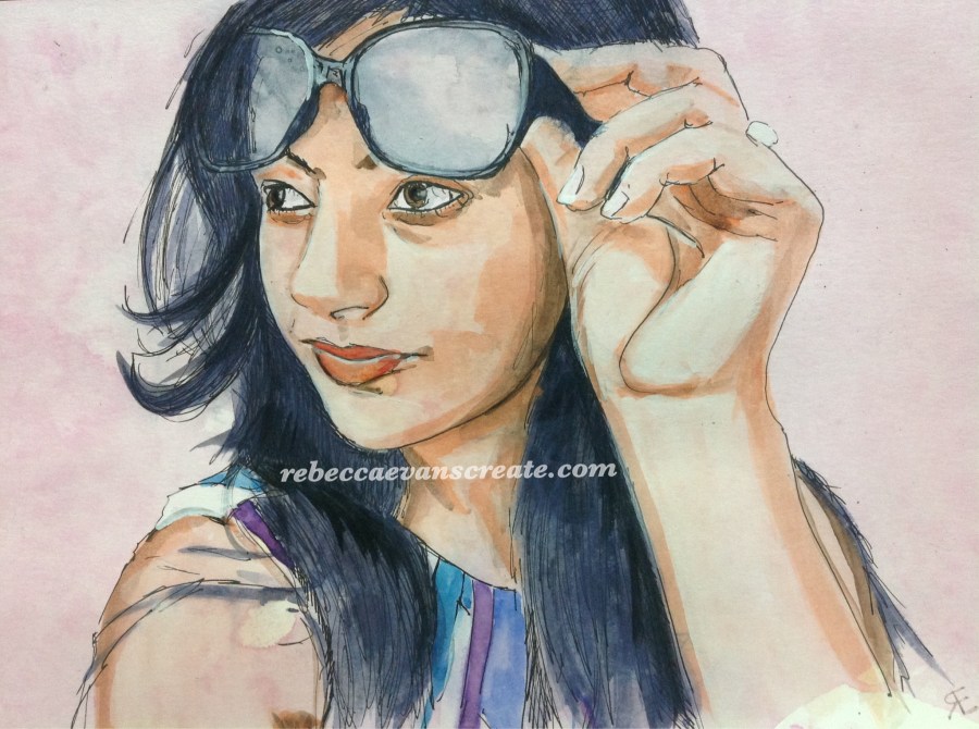 ‘I see you ‘ Sktchy app reference photo A4 hotpress 140lb line and wash, watercolour