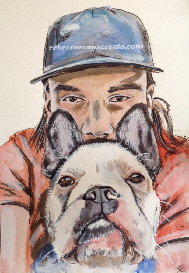‘One man and his dog’ Sktchy app reference photo 10×7″ hotpress 140 lb ink and wash watercolour