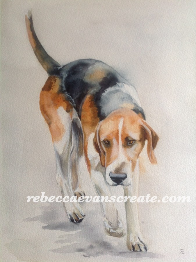 dwell alone” watercolour foxhound 14×10″coldpress 140lb