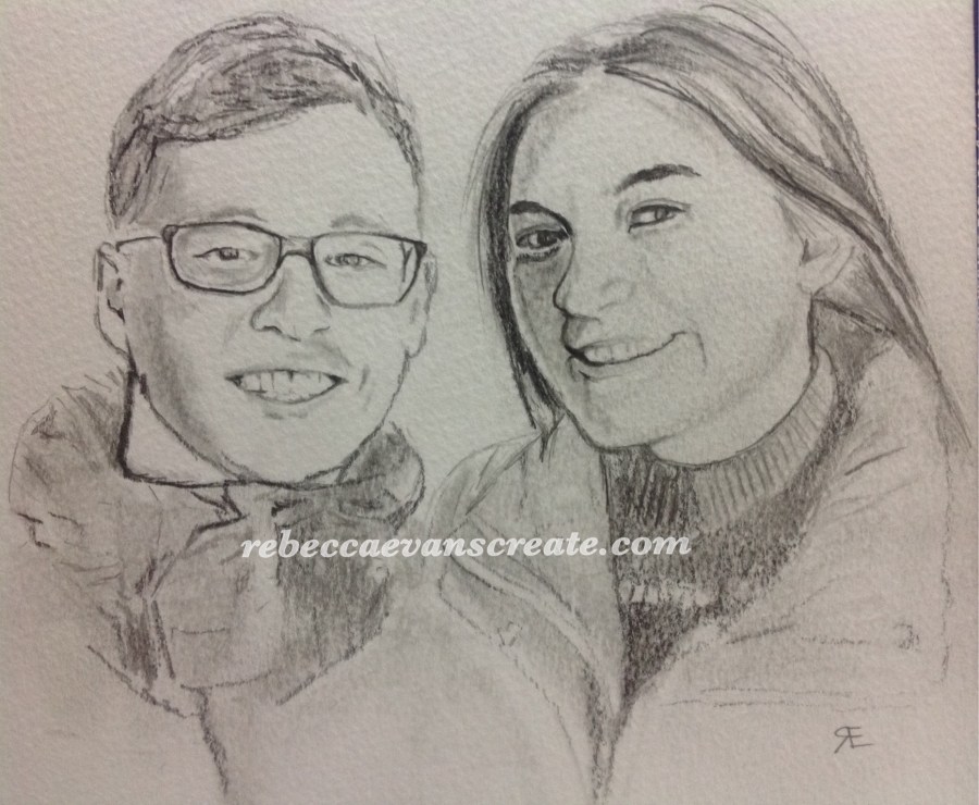 ‘Leah and Tom’ pencil sketch on 140 lb coldpress 10×7″