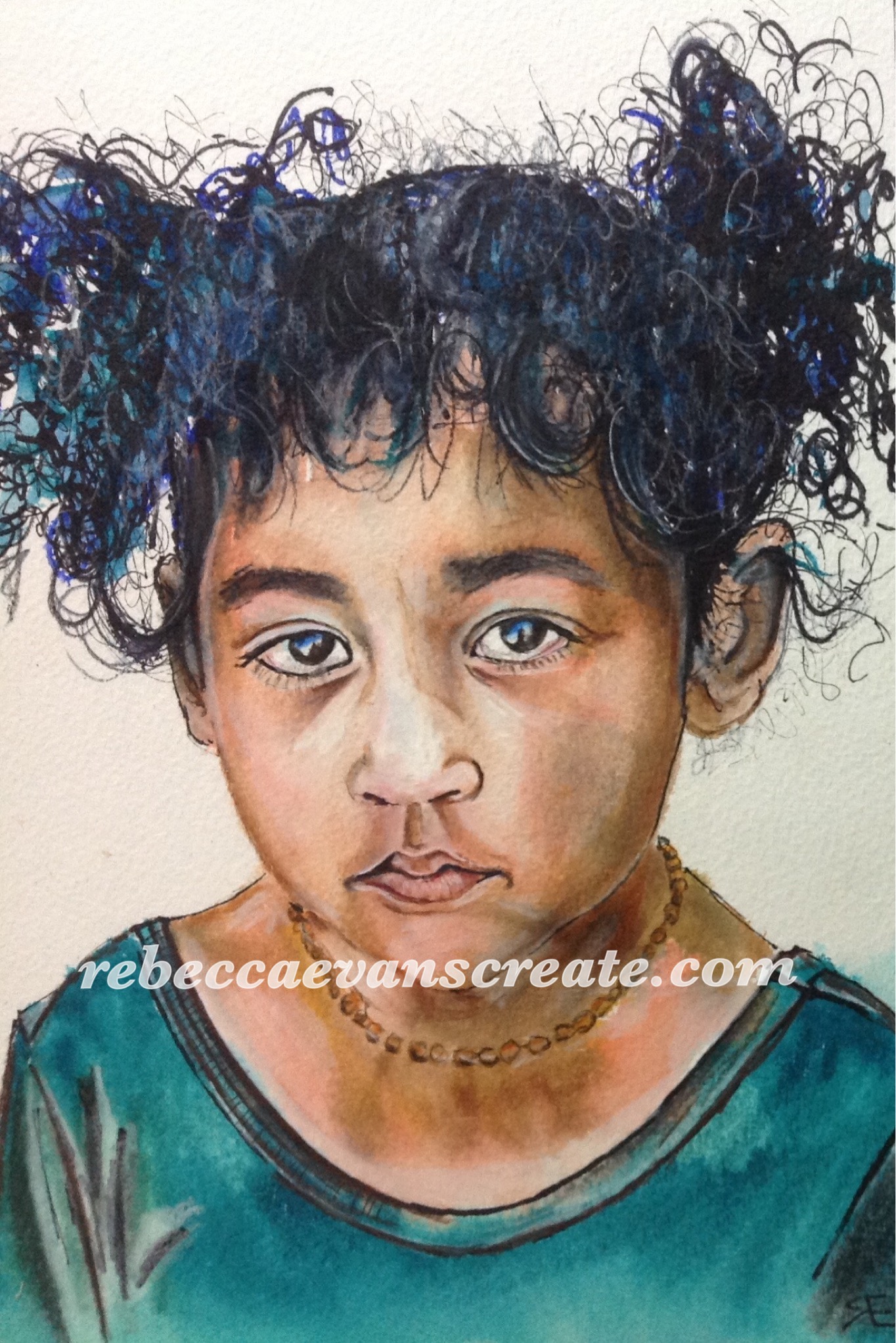 ‘River’ sktchy app reference 10×7″ 140lb coldpress pen and ink with coloured pencils ( polychromo)