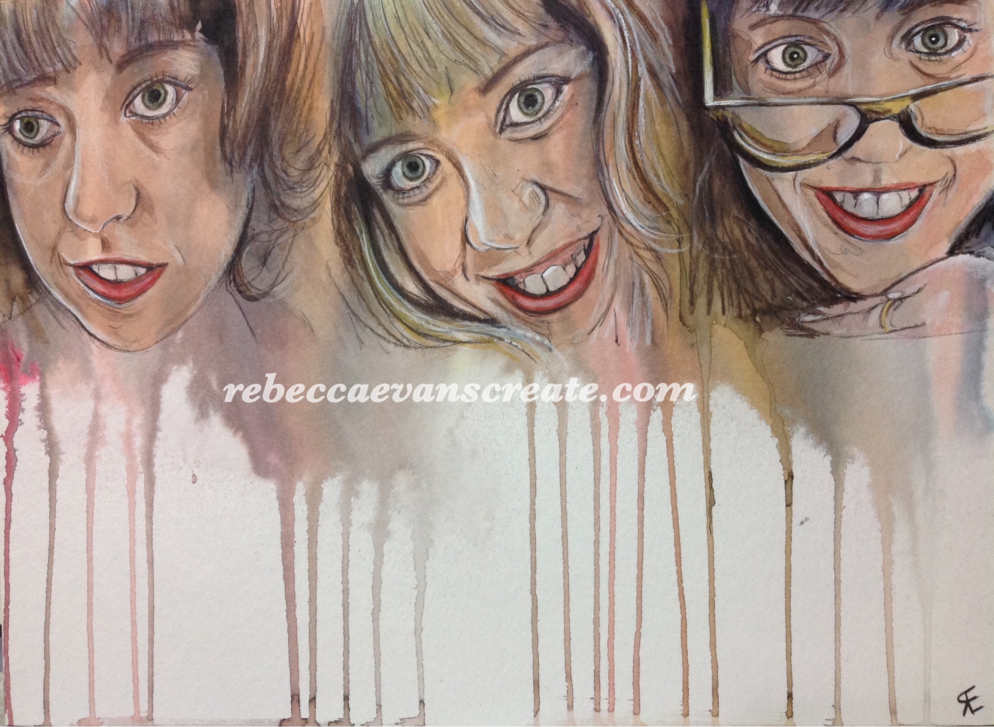 ‘3 a me goes’ 30x40cm 200lb coldpress. Watercolour, ink and polychromos pencils with thank Elizabeth Lapsley sktchy app reference photo