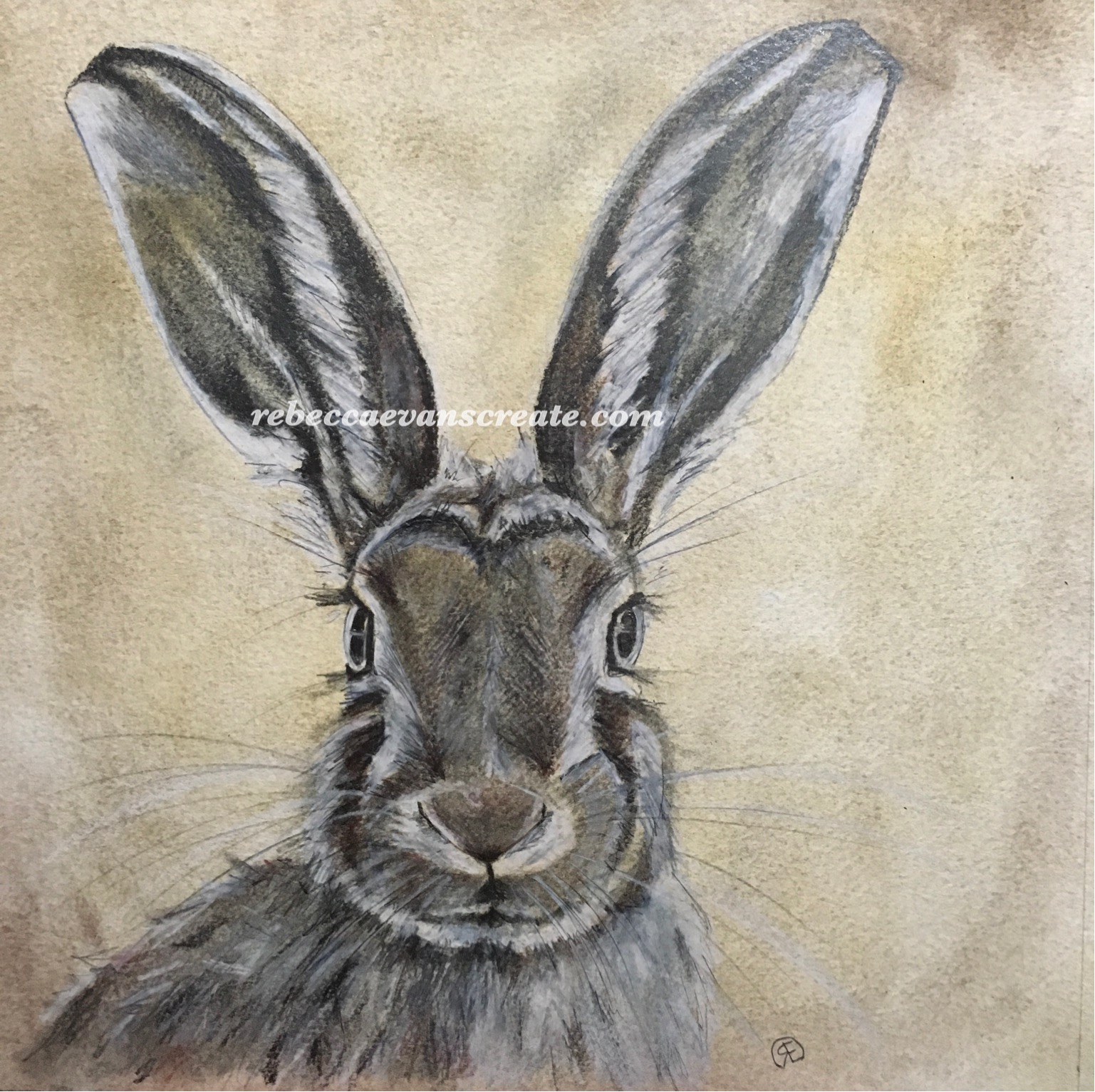Hare pencil sketch, graphite pencils and cretacolor oil pencil set on watercolour paper 140lb 23×23 cm