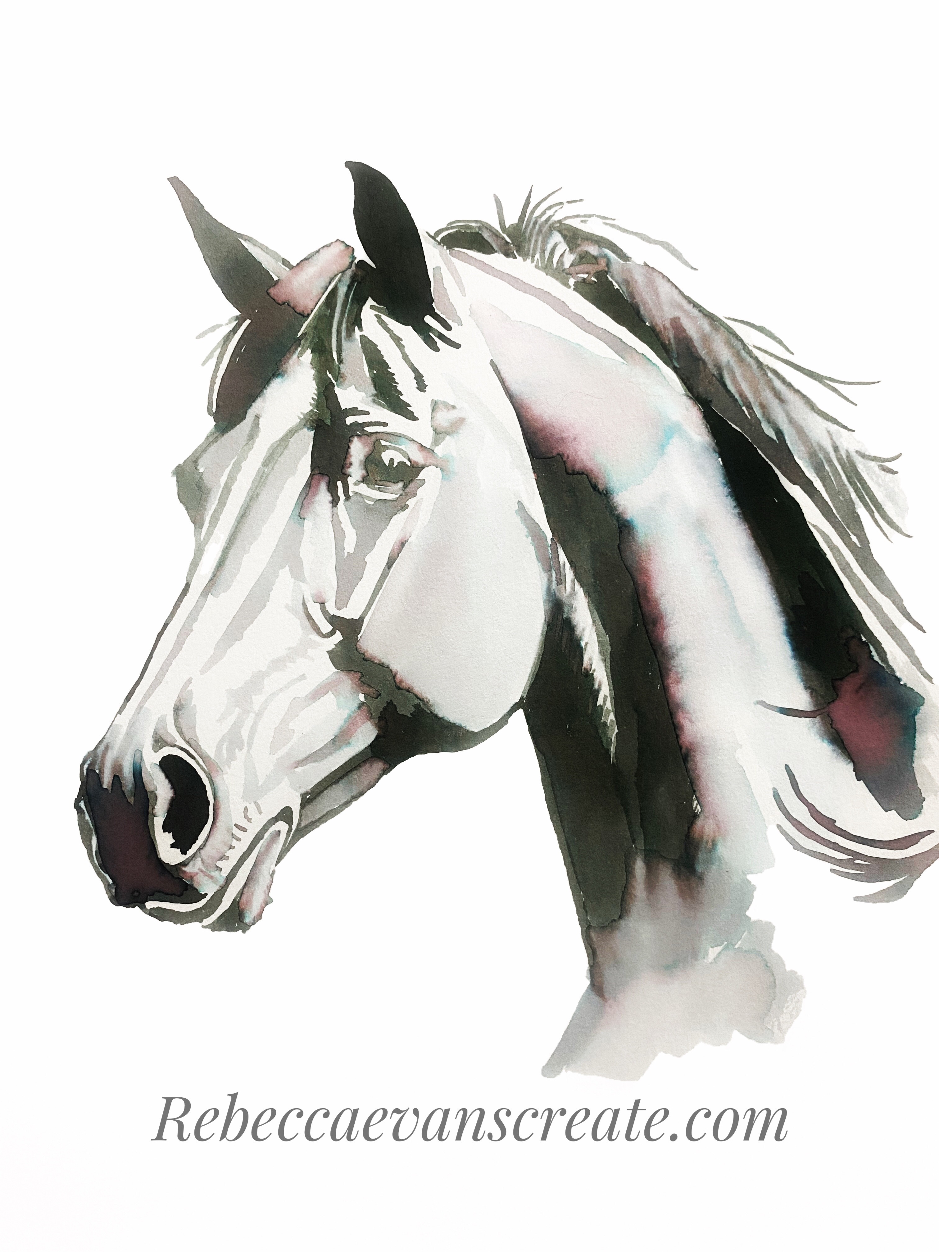 ‘Go-ahead’ ink on card Robert Oster graphite ink horse head sketch.
