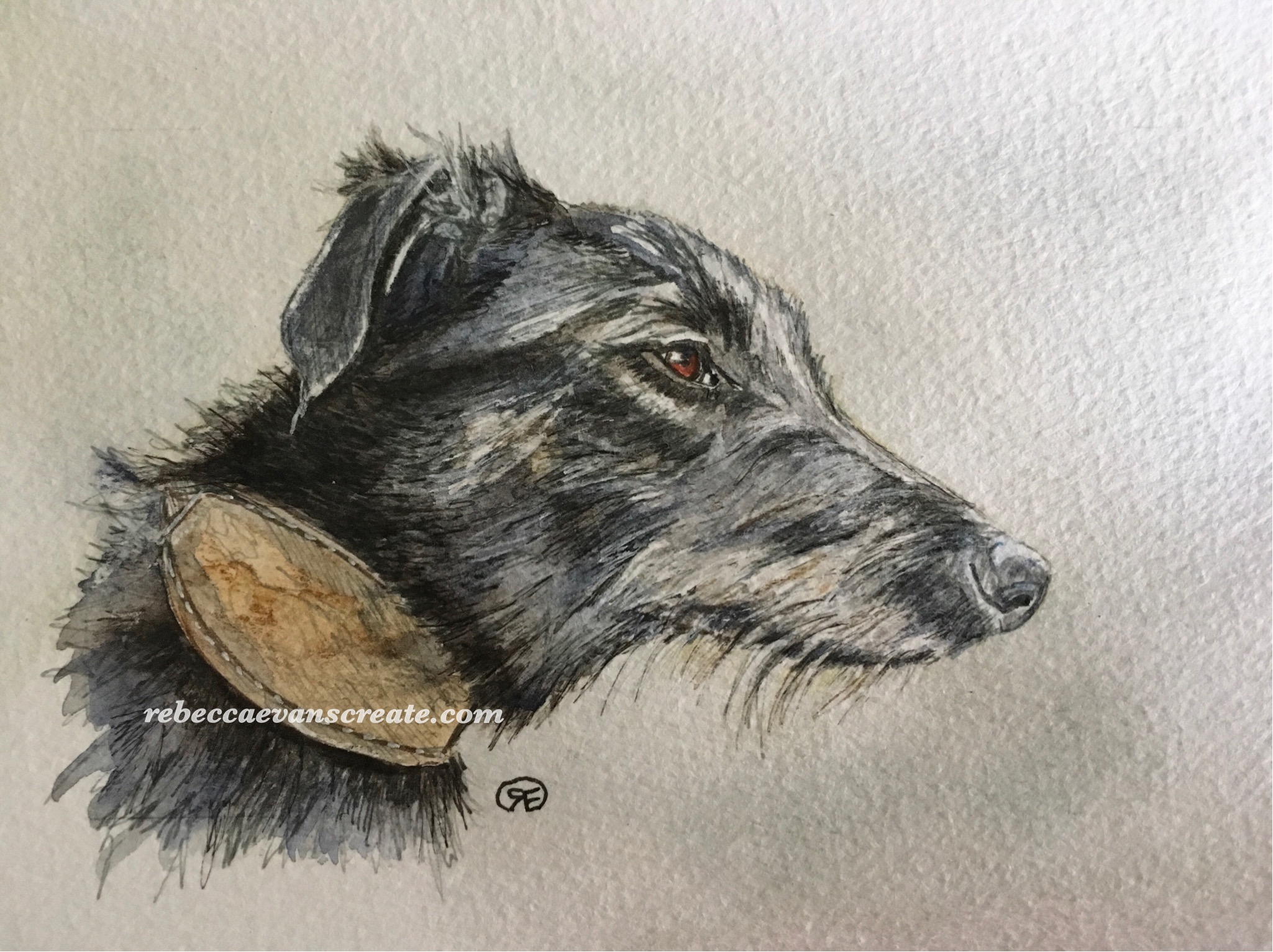 Ink and wash/watercolour study sketch of lurcher
