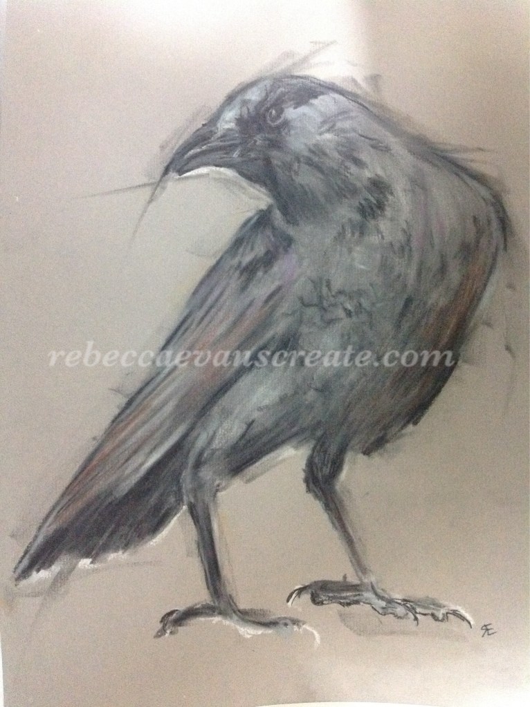 ‘Trouble at the tower’ Raven in pastel and charcoal