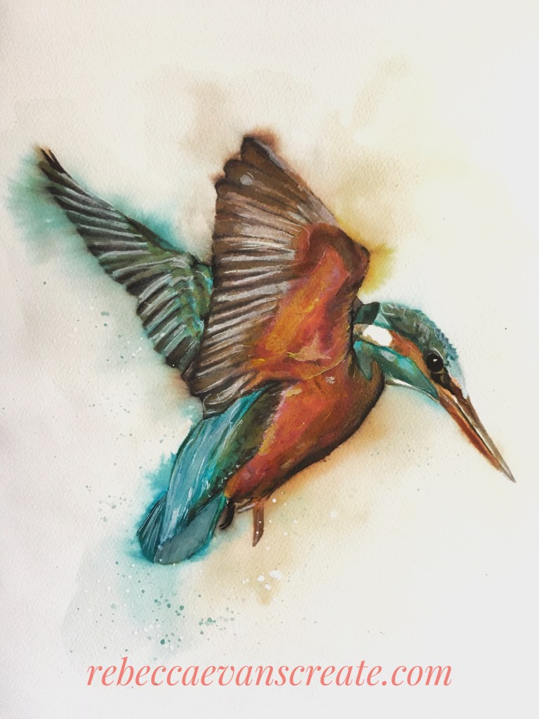 Kingfisher in ink, with acrylic overl