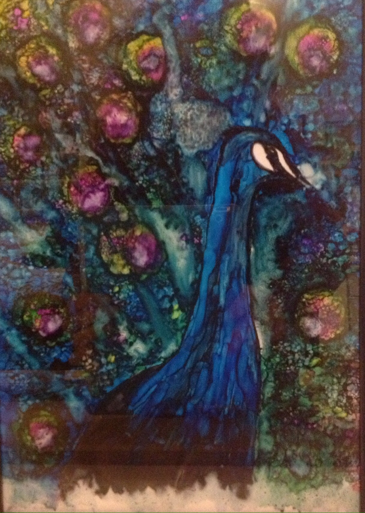 Peacock in alcohol ink