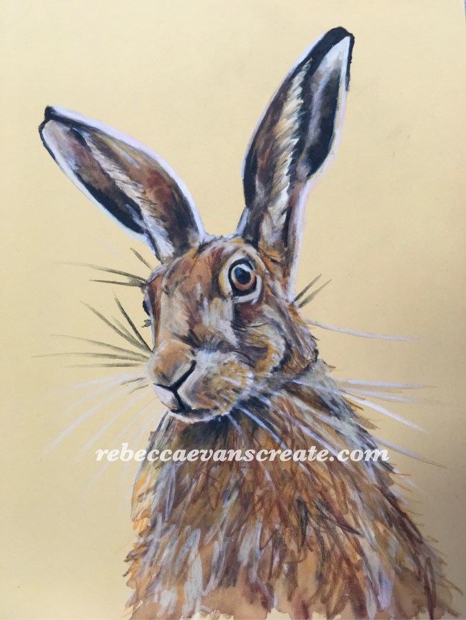 ‘Harvest hare’ 18×24 cm pastel mat board clairefontaine. Pastel and coloured pencil