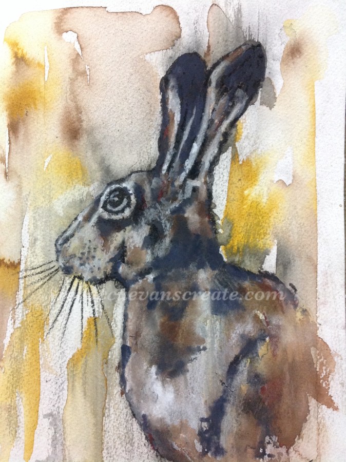 ‘Hare and hare alike’ watercolour, ink and charcoal inspired by Leanne Dolan artwork