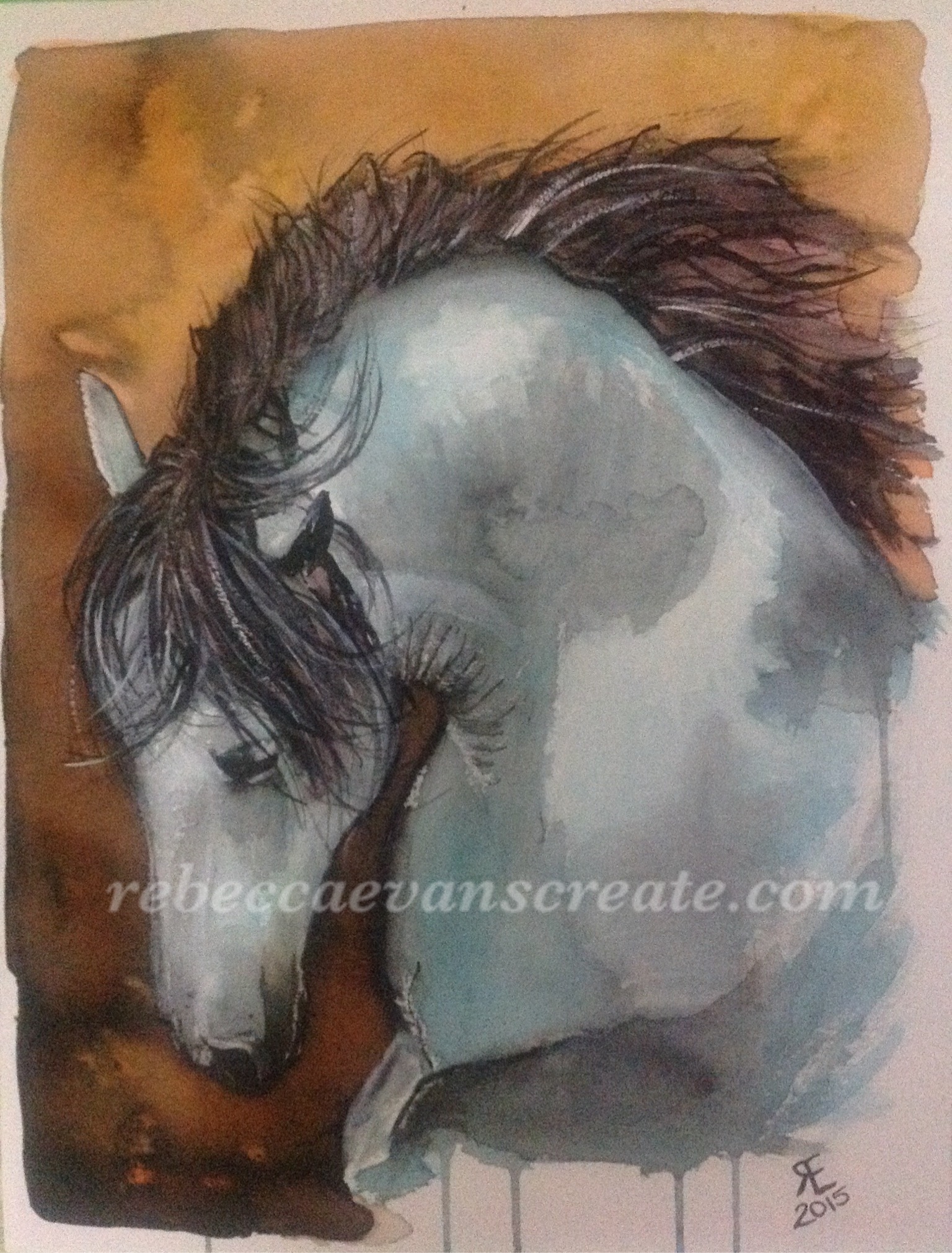 ‘Iberian sunset’ watercolour, Indian ink, brusho