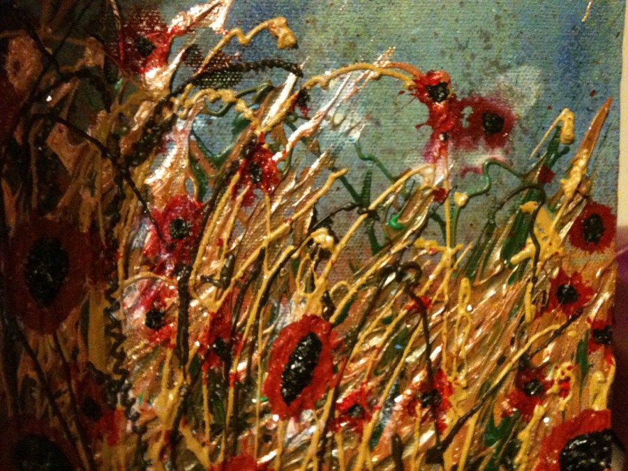 Acrylic painting, an accident really as I was doing a floral summer painting but had run out of green paint, I do love happy accidents. This is another painting using a flicking technique, a day out in the garden is needed for this… Too messy