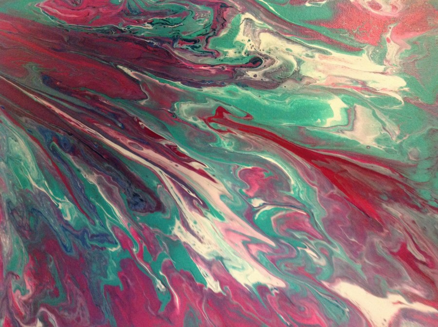 My last example of swishing paint, this one though was done on a sheet of plastic, from the hardware store, it worked well and the paint flowed with ease, tipping and blending from side to side, I love the colours
