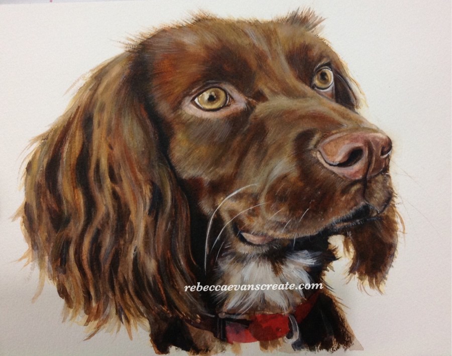 ‘Coco’ watercolour working cocker spaniel. 10×14″ 140 lb cold press