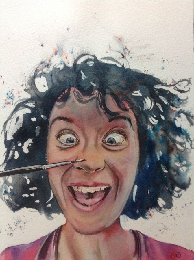 Sktchy 30 challenge day 18 ‘ art supplies’ 10 x7″ coldpress 140lb brusho