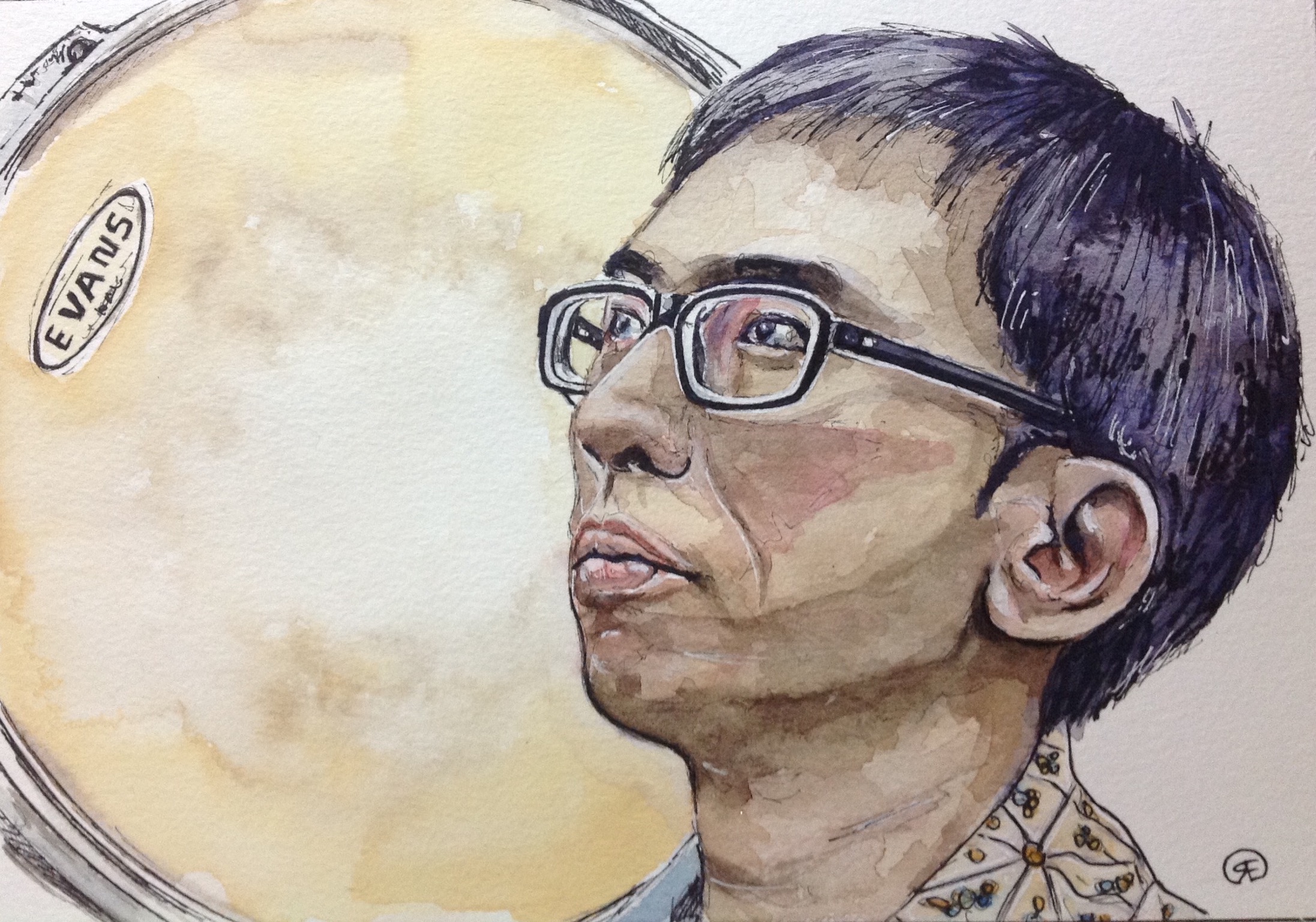 sktchy30 day 28 ‘ music’ pen and watercolour 10×7″ 140 lb coldpress