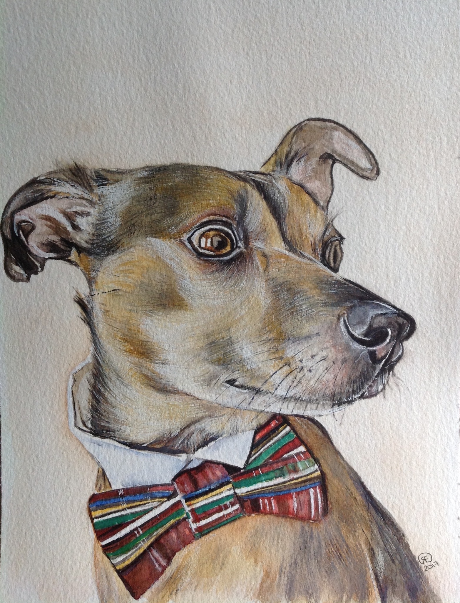 ‘Hubble’ the little dog I have fallen in love with here on Wordpress at ‘little dog laughed’ 10×7″ 140 lb cold press, thank you Hubble ❤️