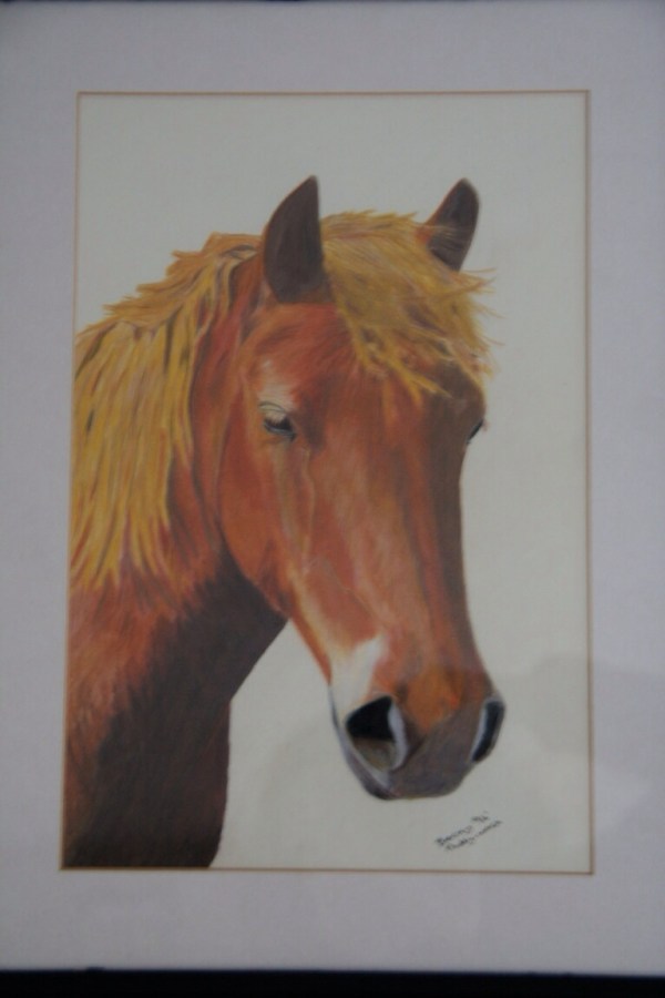 One of my early drawing of my pony paddy, when he was 3 years old, coloured pencil on mount board, used very hard!