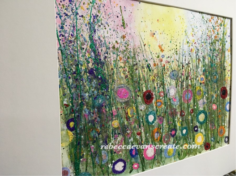 ‘Wild fields’ watercolour and glitter 20×16″ 140lb coldpress mounted and framed…a bit of wild bling