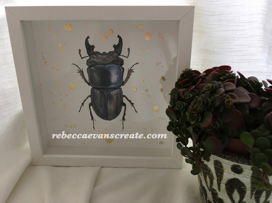 Stag beetle watercolour and gold leaf