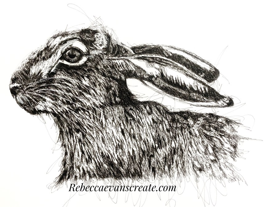 Scribble art hare sketch using pentel fine liner