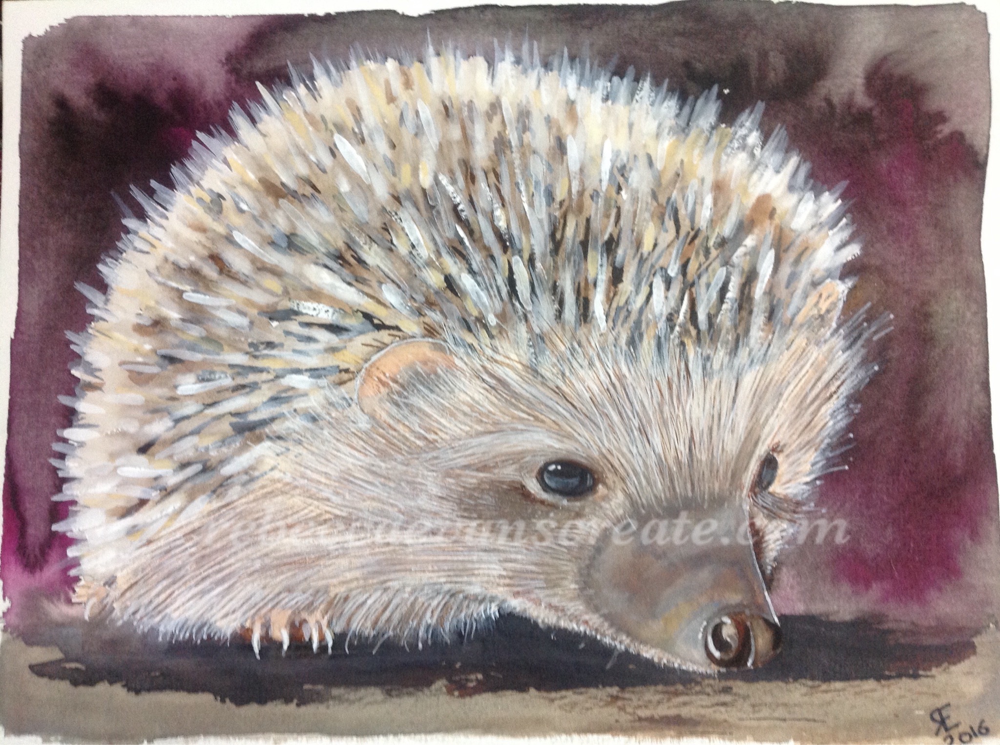 ‘Peggy’ watercolour and acrylic hedgehog